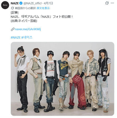 期待のボーイズグループNAZE(ネイズ)が、5月4日に正式デビューする。グループ名と同じミニアルバム「NAZE」をリリースする。日本人2人、韓国人4人、タイ人1人で構成された多国籍グループで、デビュー前から話題となっている。8日にはデビューアルバム写真を公開した。