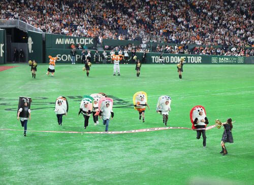 ◆すしレース 4回表終了時にイニング間イベントとして、米国の「ホットドッグレース」のような「すしレース」を開催している。ファン参加型のアクティベーションで出場者は「江戸前スーシーズ」に扮(ふん)して競走する。メンバーはマグロ、コハダ、タマゴ、エビ、アナゴの5貫に加え、今季から新メンバーのイカ、ウニ、芽ネギ、かんぴょうの計9貫。