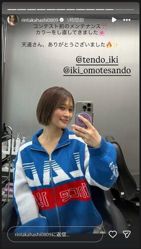 ストーリーズでも「毎日コンテスト終わった後の楽しみなこと考えて生きてます笑」と記し、グレーのトレーニングウエア自撮りショットをアップ。「コンテスト前のメンテナンス カラーをし直してきました」と整ったショートヘア姿も添えた。