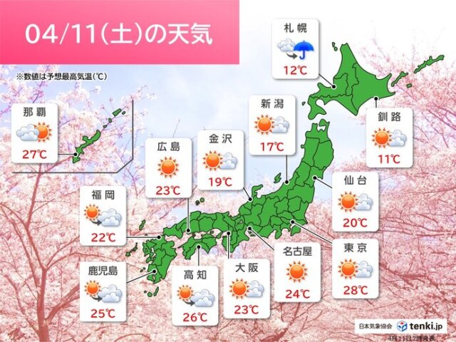 º£Æü11Æü(ÅÚ)¤Ï¡¢È¯Ã£¤·¤¿Ä㵤°µ¤Î±Æ¶Á¤Ç¡¢ËÌÆüËÜ¤ÎÆüËܳ¤Â¦¤òÃæ¿´¤Ë±«¤äÍ뱫¤Ë¤Ê¤ë¤Ç¤·¤ç¤¦¡£É÷¤¬Èó¾ï¤Ë¶¯¤¯¿á¤¡¢Ë½É÷¤Î¶²¤ì¤¬¤¢¤ê¤Þ¤¹¡£ËÌΦ¤âÄ«¤Î¤¦¤Á¤Ï±«¤Î¹ß¤ë½ê¤¬¤¢¤ë¤Ç¤·¤ç¤¦¡£´ØÅ줫¤é¶å½£¤ÏÀ²¤ì¤Æµ¤²¹¤¬¾å¤¬¤ê¡¢´ØÅì¤Ïº£Ç¯½é¤á¤Æ¤Î²ÆÆü¤Ë¤Ê¤ë½ê¤¬¤¢¤ê¤½¤¦¤Ç¤¹¡£µÞ¤Ê½ë¤µ¤Ë¤´Ãí°Õ¤¯¤À¤µ¤¤¡£