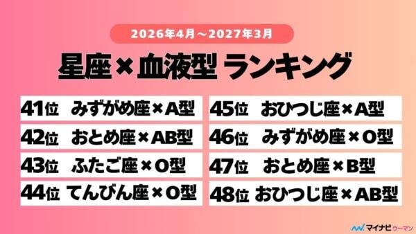 41°Ì¡¡¤ß¤º¤¬¤áºÂ¡ßA·¿ 42°Ì¡¡¤ª¤È¤áºÂ¡ßAB·¿ 43°Ì¡¡¤Õ¤¿¤´ºÂ¡ßO·¿ 44°Ì¡¡¤Æ¤ó¤Ó¤óºÂ¡ßO·¿ 45°Ì¡¡¤ª¤Ò¤Ä¤¸ºÂ¡ßA·¿ 46°Ì¡¡¤ß¤º¤¬¤áºÂ¡ßO·¿ 47°Ì¡¡¤ª¤È¤áºÂ¡ßB·¿ 48°Ì¡¡¤ª¤Ò¤Ä¤¸ºÂ¡ßAB·¿