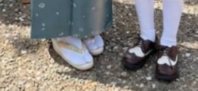 この日卒園式を迎えた息子くんは、白い縁取りが付いた黒のジャケットにボーダー柄のネクタイを締め、黒とグレーのチェック柄のハーフパンツをはいて、ピースサインをしています。こだわって選んだというすてきなブラウンと白の革靴と白のハイソックスを履き、おめかしした姿がかっこいいですね!