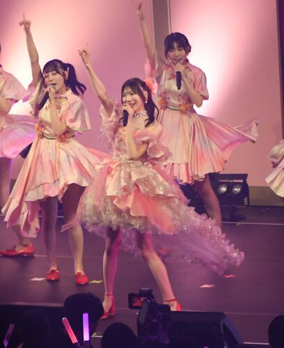 夜公演では、今月29日の卒業公演で芸能界を引退するキャプテン藤崎未夢(25)の「卒業セレモニー」が行われた。藤崎は、1期生から5期生までの各期別のユニットに参加してセンターを務めるなどメンバーと一体になったパフォーマンスを披露。ソロでは「私のために」、ラストは自身初のセンター曲「シャーベットピンク」で終えた。
