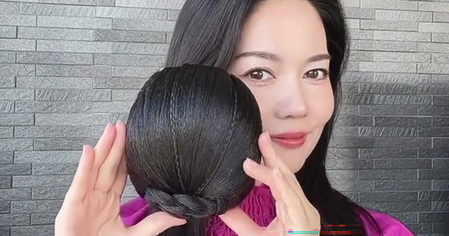 まずは、ヘアクリームを全体になじませ、耳上から頭頂部に向かって髪をブロッキング。上の髪はヘアクリップで留めておき、下の髪はひとつに結んでしっかり引き締めます。下の髪を三つ編みにしたら、毛束をくるっと巻き付けるようにまとめ、数カ所をピンで留めていきましょう。
