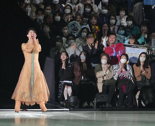 この日は番外編「YUZURU HANYU REALIVE an ICE STORY project」の初日を地元宮城のセキスイハイムスーパーアリーナで迎えた。上演後の第2部として、羽生さんが執筆するオリジナル物語「WHITE…」の前日譚(たん)となる「PREQUEL Before the WHITE」も披露し、立ち見も含む超満員7000人を魅了した。映画「国宝」の音楽を手掛けた原摩利彦氏(43)が全10曲を書き下ろしていたことも明かされた。【木下淳】
