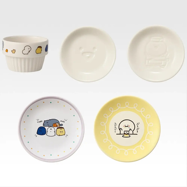 E賞「はらぺこテーブルウェア」は、ココット、醤油皿、小皿の便利なテーブルウェアアソート。いつものごはんも、お文具さんでにぎやかになる。