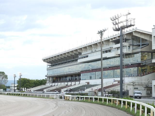 レースが行われた金沢競馬場(撮影:稲葉訓也) 12日、金沢競馬場で行われたJBCイヤー記念(重賞・ダ1700m・1着賞金250万円)は、ハナに立って後続を寄せつけずに逃げ切った加藤翔馬騎手騎乗の4番人気ハクサンツキミテイ(牡5、金沢・加藤和義厩舎)が、1番人気リュウノブレイク(セ7、金沢・加藤和義厩舎)に2.1/2馬身差をつけ優勝した。勝ちタイムは1分56秒9(稍重)。