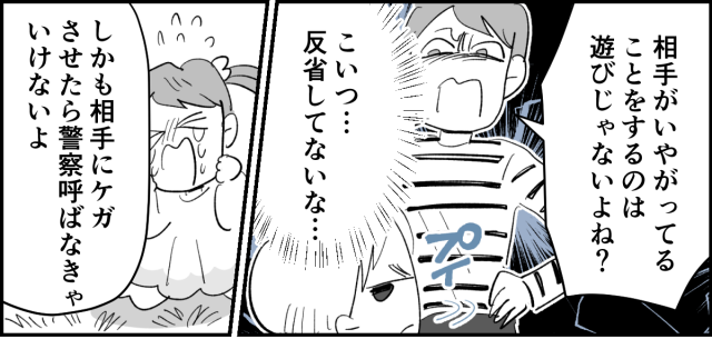 ユイにケガを負わせた件を謝りに来たのかと思ったのですが……。どうやら文句を言いに来たようです。「子ども相手に言いすぎ、脅迫罪だ」と言うので、私もとっさに「傷害罪では?」と言い返しました。