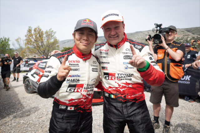 勝田貴元/アーロン・ジョンストン(トヨタGRヤリス・ラリー1) 4月12日(日)、クロアチアを舞台に開催されている2026年WRC世界ラリー選手権の第4戦『ラリー・クロアチア』のデイ4が行われ、TOYOTA GAZOO Racingワールドラリーチーム(TGR-WRT)の勝田貴元/アーロン・ジョンストン組(トヨタGRヤリス・ラリー1)がサファリ・ラリー・ケニアに続いて2戦連続での総合優勝を飾った。