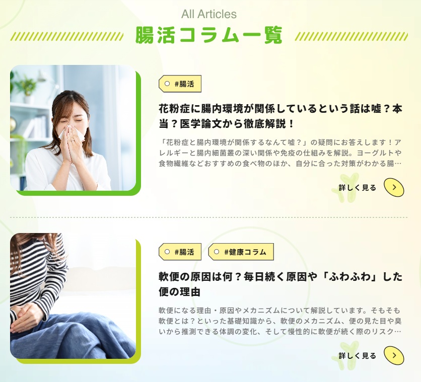 配信される内容は多岐にわたり、公開中のコラムには「短鎖脂肪酸の基礎と増やし方」「便秘タイプ別の原因と対策」「花粉症と腸内環境の関連を論文から検証」など、生活者が抱えやすい疑問に応える内容が並ぶ。同社が採用する解析技術は、従来の検査では検出が困難だった希少な菌種まで「種」レベルで特定可能であり、その精緻なデータを踏まえた解説は、個々の体質に最適なアクションを選択するための強力な指針となる。