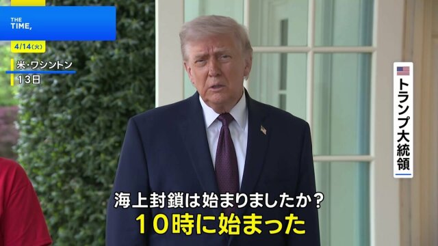 トランプ大統領は、アメリカ軍がイランの港湾に出入りする船舶への封鎖措置について、13日の午前10時、日本時間の午後11時から開始したと述べました。