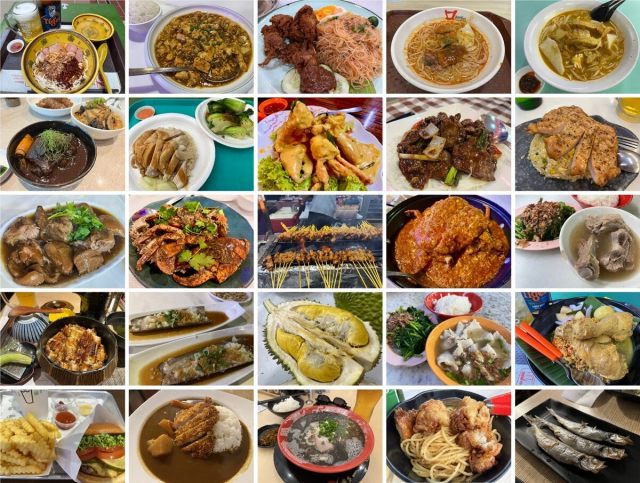 シンガポールで食べた主な料理一覧。全体的に茶色いが、シンガポールは基本的になにを食べてもおいしい。