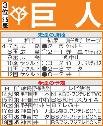 <巨人:先週のMVP&今週の展望、入れ替え&広報情報>