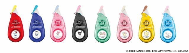 テープ幅は、太幅10mmタイプ。全8種類(2柄セット×4種)の限定デザインは、「ハローキティ&ディアダニエル」「マイメロディ&クロミ」「リトルツインスターズ」「ポムポムプリン&シナモロール」がラインナップされている。
