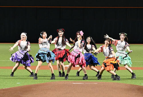試合前のライブパフォーマンスではヒット曲「倍倍FIGHT!」を熱唱。北九州出身の立花琴未(23)は「福岡出身としてみずほペイペイドームに立ちたかった。次はライブができたら幸せだなと思います」と笑顔で夢を語った。