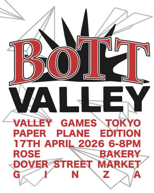 ◾️VALLEY GAMES TOKYO PAPER PLANE EDITION日程 :2026年4月17日(金)会場 :DOVER STREET MARKET GINZA 7F ROSE BAKERY GINZA時間:18:00〜20:00所在地:中央区銀座6-9-5参加費 :無料