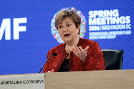 15日、米ワシントンの国際通貨基金(IMF)本部で記者会見するゲオルギエワ専務理事(AFP時事) 【ワシントン時事】国際通貨基金(IMF)のゲオルギエワ専務理事は15日の記者会見で、中東情勢の悪化を受け、サハラ砂漠以南のアフリカ諸国など少なくとも12カ国から金融支援の要請が見込まれるとの見通しを明らかにした。危機に陥る国への支援規模は200億〜500億ドル(約3兆〜8兆円)に上る可能性があるという。