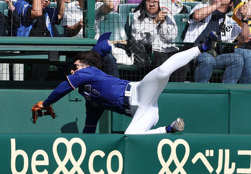 3回、阪神佐藤のファウルフライを追ってカメラマン席に頭から落下。担架で三塁側アルプス下の通路から運ばれ、球場出口に付けられた救急車で病院に搬送された。頭部に裂傷があり、記憶が一瞬飛んでいたとのこと。井上一樹監督(54)は「裂傷した部分だけで済むのが一番いいとは思いますけど。頭に関することなので検査をした上で。何もないことを祈るのみです」とコメント。出場選手登録を抹消される見込みだ。