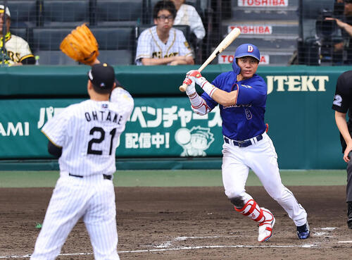 阪神対中日 4回表中日2死、大島は安打を放つ(撮影・上田博志)<阪神4−3中日>◇18日◇甲子園