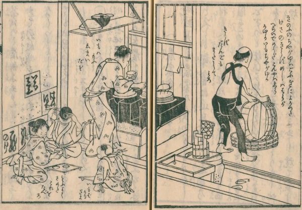 米の調理は、古代から甕(かめ)での煮炊きや「こしき」での蒸し調理など、さまざまな方法で行われ、平安末期頃にはつば付きの土器の釜が、鎌倉以降には鉄製の羽釜が登場した。江戸後期になると、げたの歯のような把手(とって)がついた分厚いふたの釜が普及。分厚く重い蓋は、釜の内に蒸気を密閉して保つためで、下駄の歯のような把手は、高い温度や湿度で板が反るのを防ぐ工夫だったという。羽釜は竈(かまど)にはめ込み、下と横から効率よく加熱。少量の水で炊き干した後に、中の蒸気で米を蒸すことで完成させる調理工程は、現代の炊飯器と同様の仕組みだという。