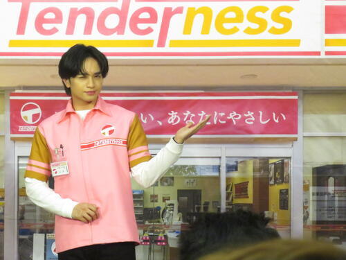 ウインクしながらNHKドラマ「コンビニ兄弟 テンダネス門司港こがね村店」をPRした中島健人