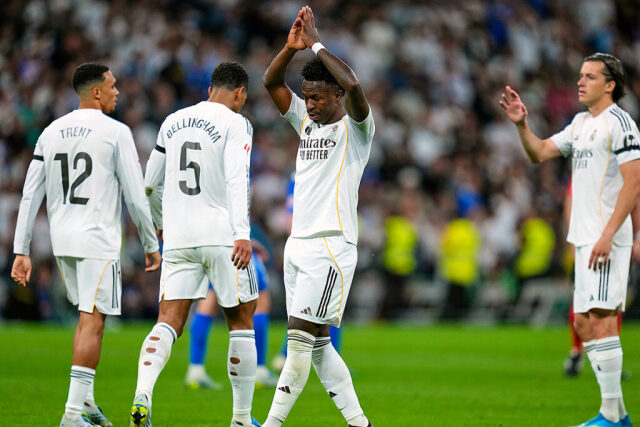 決勝点を決めたヴィニシウス[写真]=Getty Images ラ・リーガ第33節が21日に行われ、レアル・マドリードとアラベスが対戦した。