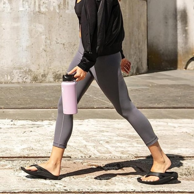OOFOS(ウーフォス)の「OOriginal」は、ソールにメーカー独自の素材を採用したリカバリーサンダルです。衝撃吸収率が一般的な樹脂のソールより37%も高く、驚異的なクッション性によって足や膝などの負担を抑えます。立体的なフットベッドのデザインは特許取得済み。土踏まずをしっかりと支え、圧力を分散します。関節に負荷が掛かりにくく疲れにくいため、長距離を歩く時や長時間の立ち仕事をする場合に、このアイテムの特性が生かされるでしょう。
