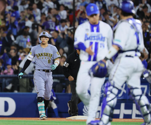 8回に1点勝ち越されて迎えた9回。1死から近本光司外野手(31)がクローザー山崎康晃投手(33)から粘った末に8球目を右翼線二塁打として突破口を開いた。