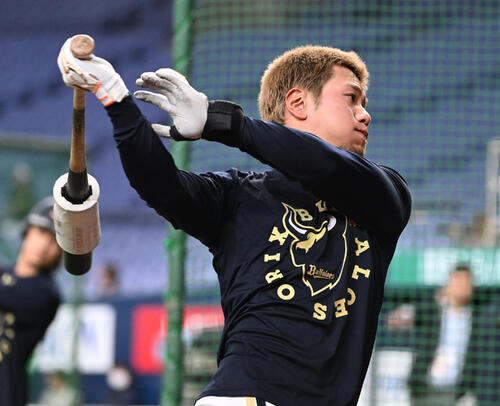 オリックス杉沢龍外野手(25)が早期復帰を目指し、片手でのティー打撃を行った。14日西武戦(京セラドーム大阪)で右手首付近に死球を受け骨折。リハビリ組に合流3日後、まだ痛みがある中、左腕のみでティー打撃を再開した。1軍スタメン出場が続く中でのアクシデントに「しゃあないですね」と割り切った様子。約1カ月後に右手のギプスが取れる想定で「早くて(2軍の)試合復帰までは2カ月」と見込む。3カ月後の1軍復帰を目指す。