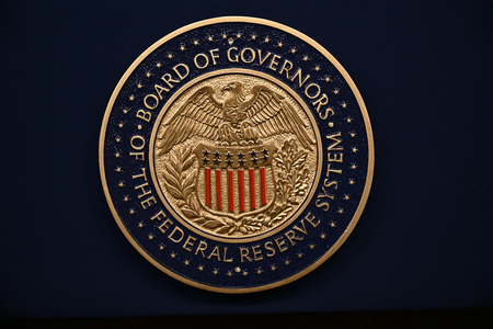 米連邦準備制度理事会(FRB)のシンボルマーク(AFP時事) 【ワシントン時事】米連邦準備制度理事会(FRB)は28、29両日、連邦公開市場委員会(FOMC)を開き、金融政策を協議する。米イスラエルとイランの紛争に伴う原油高でインフレ懸念が広がっていることを受け、3会合連続で利下げ見送りとなる公算が大きい。原油高が長引くとの警戒感がくすぶる中、FRBは様子見を貫き、物価動向など経済情勢を慎重に見極める方針だ。