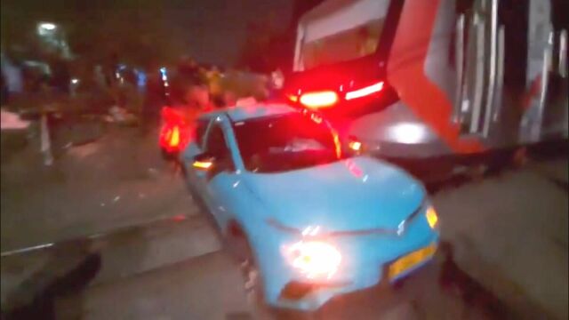 追突された通勤電車は事故の直前、踏切に進入したタクシーとぶつかったため、緊急停車中だったということで、地元当局が事故の原因を詳しく調べています。