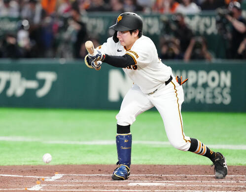 巨人対広島 2回裏巨人1死二、三塁、スクイズを決める竹丸和幸(撮影・江口和貴)<巨人−広島>◇29日◇東京ドーム