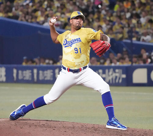 中日対DeNA 7回表DeNA1死一、二塁、中日2番手で登板するウンベルト・メヒア(撮影・森本幸一)<中日2−6DeNA>◇30日◇バンテリンドーム