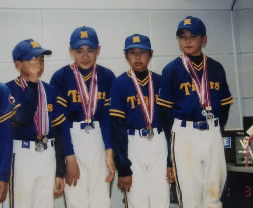昆陽里タイガース時代の田中将(右から3人目)と坂本(右端)