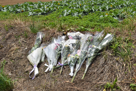 長野4人殺害事件の現場に置かれた花=2023年6月、長野県中野市
