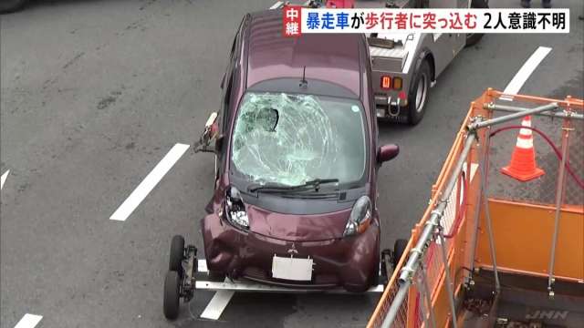 この事故で、歩行者3人が病院に搬送され、このうち30代くらいの男性と40代くらいの女性が意識不明の重体になっています。