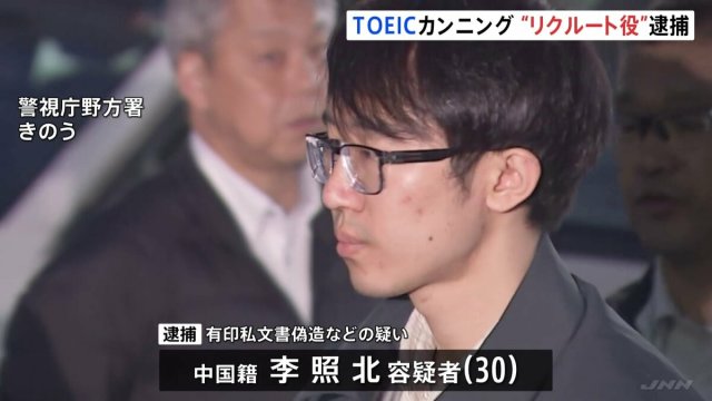 TOEIC不正受験か 「リクルート役」中国籍の男(30)を新たに逮捕 既に逮捕・起訴されている王立坤被告(27)に試験会場外から複数回電話 警視庁