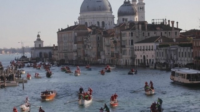 「水の都」として知られるイタリア北部・ベネチアで21日、毎年恒例の「サンタクロースのレガッタ」が開かれました。