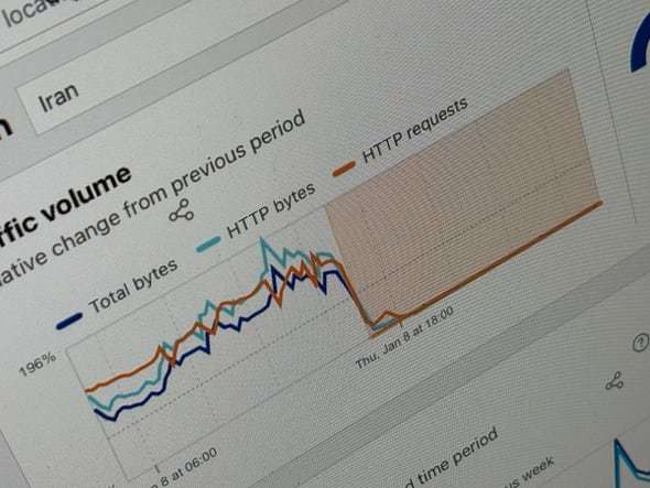 米Cloudflareは1月8日(現地時間)、イランのインターネットトラフィックが事実上ゼロになったと報告した。イラン政府がインターネットから同国を切り離した可能性があるとしている。