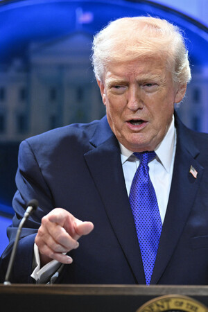 20日、米ワシントンで記者会見するトランプ大統領(AFP時事) 【ワシントン時事】米連邦最高裁は20日、貿易相手国・地域に対する相互関税を違憲と判断し、国際緊急経済権限法(IEEPA)は「大統領に関税を課す権限を与えていない」と断じた。トランプ大統領は相互関税などの徴収を終了する大統領令に署名。代替手段として、全世界に対する10%の追加関税を24日に発動することで、政権への打撃の緩和を図った。
