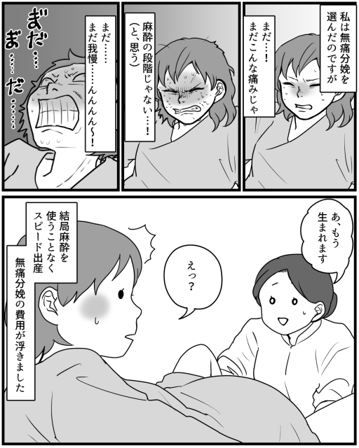 助産師さんから告げられたひとことに妊婦さん、ビックリ。「私の無痛分娩は?」痛みに強いタイプだったのか、痛みをガマンしすぎて結局麻酔を使うことないままスピード出産。浮いた無痛分娩の費用で、豪遊しちゃってくださーい!