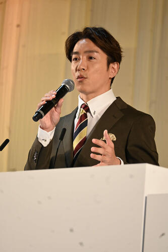 近大の卒業式にゲストスピーカーとしてサプライズで登壇した SUPER EIGHTの村上信五(撮影・松浦隆司)