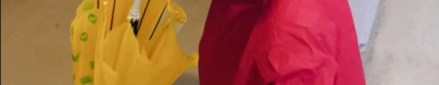 写っているのは黄色い長靴を履いて黄色い傘を持ち、真っ赤なレインコートを着ている息子くんの姿。袖口から覗く小さな手がかわいらしいですが、実はこのレインコート、ただの赤いレインコートではありませんでした。