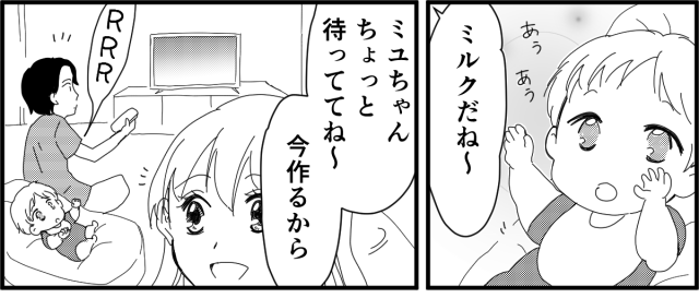 私は娘のためにミルクを用意し始めました。夫はテレビを見ています。すると夫のスマホが鳴りました。
