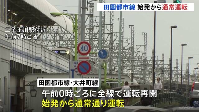 東急電鉄によりますと、この事故であわせて1107本が運休し、65万人あまりに影響が出ましたが、午前0時ごろに全線で運転を再開し、始発から通常通り運転しているということです。