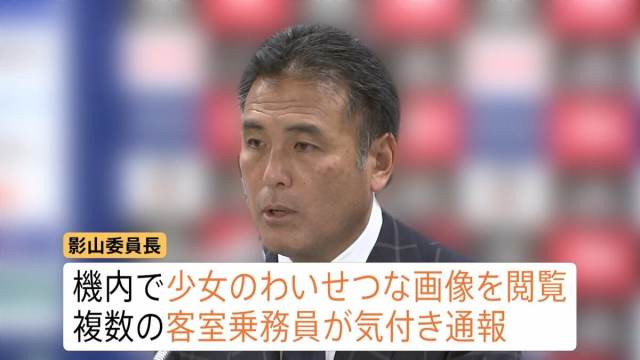 影山委員長は機内で少女のわいせつな画像などをノートパソコンで閲覧していて、複数の客室乗務員がそれに気づき、通報したということです。