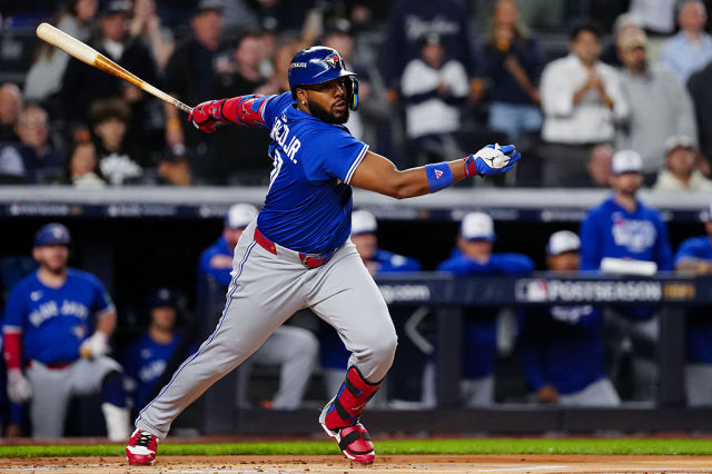 先制打を放ったブルージェイズのウラジーミル・ゲレロJr.(写真=GettyImages)● ヤンキース 2−5 ブルージェイズ ○