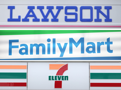 (写真上から)ローソン、ファミリーマート、セブンイレブンのロゴマーク コンビニ大手3社の2025年8月中間連結決算が15日、出そろった。ローソンとファミリーマートが増収だった一方、最大手のセブン&アイ・ホールディングスは減収となった。増収の2社は、物価高で消費者の節約志向が高まる中、プライベートブランド(PB)商品の増量キャンペーンなどで売り上げを伸ばした。
