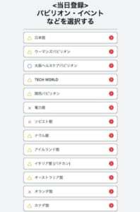 大半のパビリオンの予約枠は、サイトを訪問した時点で埋まりかけており、まるで当時の混雑ぶりを示すかのよう。