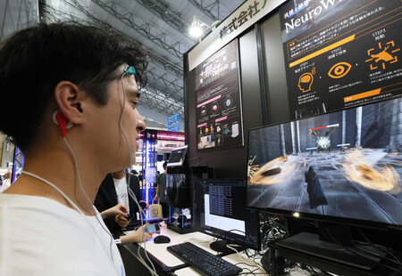 脳波と視線でゲームをプレーする人=9月25日、千葉市美浜区の幕張メッセ 手が不自由でも、頬や足、目など動かせる部分でゲームを自在にプレーできる機器や仕組みの開発が進んでいる。脳波と視線で敵を倒せるゲームも登場。誰でも利用できるという意味の「アクセシビリティー」が、ゲームの世界でも広がってきた。